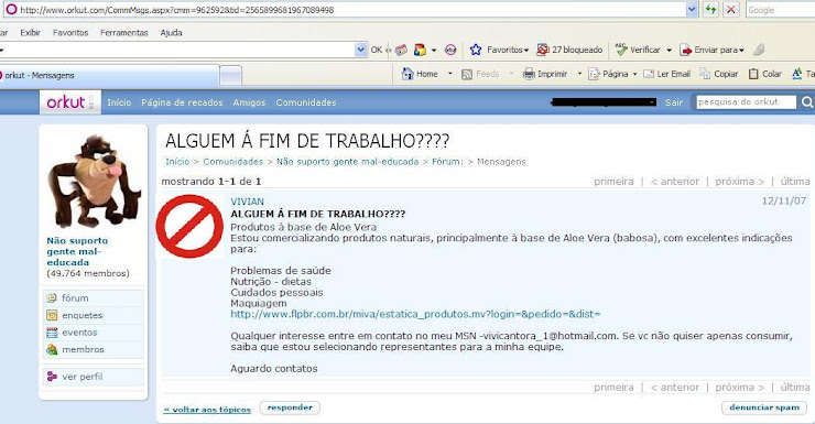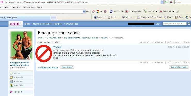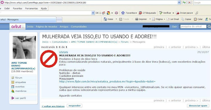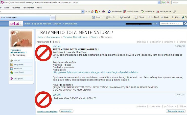 um exemplo do que acontece diariamente nas páginas da Comunidade Orkut, onde a oferta é para todo tipo de problema que envolve saúde
